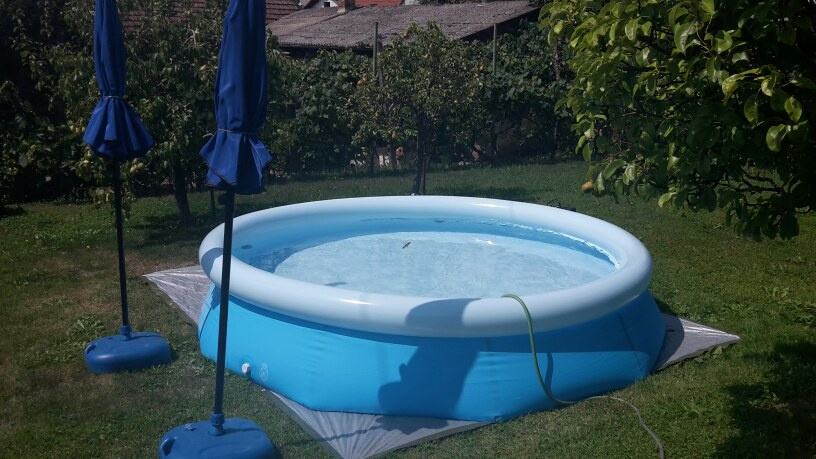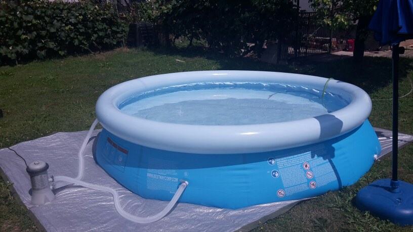 Vrtni bazen na napuhavanje. 3m promjer, cca 80 cm visina. Zapremnina 3000 - 3500 l. Koristen samo 2 puta.