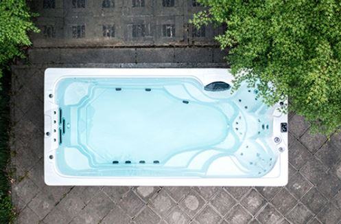 Luksuzna swim spa kada s terapeutskim masažama i protustrujne pumpe za plivanje.