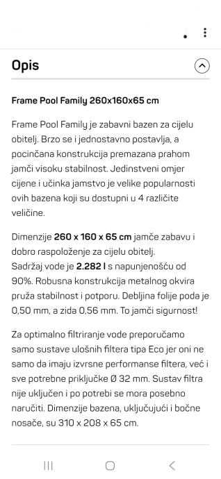Prodaje bazen dim. 260×160×65. Nov, zapakirann. Opis u slikama.