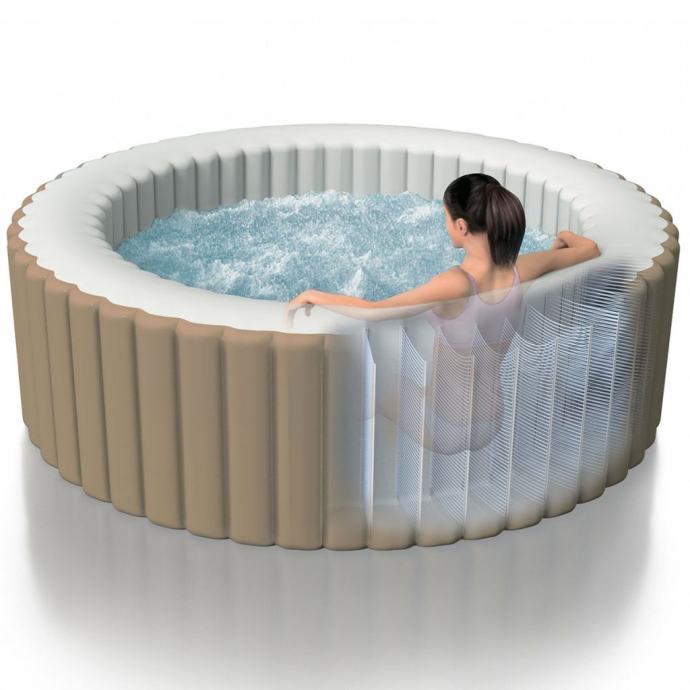 Ovaj mobilni jacuzzi marke Intex Vam pruža trenutno opuštanje za 6 odraslih osoba. Divno ćete se provoditi sa obitelj i prijateljima tijekom hladnim zimama uz ovu izuzetnu vruću kupelj. Bit će odličan izbor za opuštanje sa prijateljima u hladnim zimama, kao i vrućim ljetima. Pruža luksuzno opuštanje za četiri odrasle osobe. Uz ovu nevjerojatnu spa kadu u svom vrtu ili dvorištu,divno ćete se zabaviti sa obitelji i prijateljima. Ova vruća kupka na napuhavanje,može se lako postaviti. Ova kada sa funkcijom grijanja ima vrhunske karakteristike toplinske izolacije kako bi voda bila topla. Možete uživati u vodi na temperaturi do 40 ° C. Jedinstvena, čvrsta konstrukcija poliesterskih vlakana jamči trajnost i udobnost. Kada se može brzo napuhati i brzo ispuhati sa uvtštenom pumpom. Može se lako sklopiti radi skladištenja i transporta kada nije u uporabi. Ova kada na napuhavanje ima funkciju masaže sa mjehurićima, pretvarajući vaše dvorište u luksuzno odmaralište.
