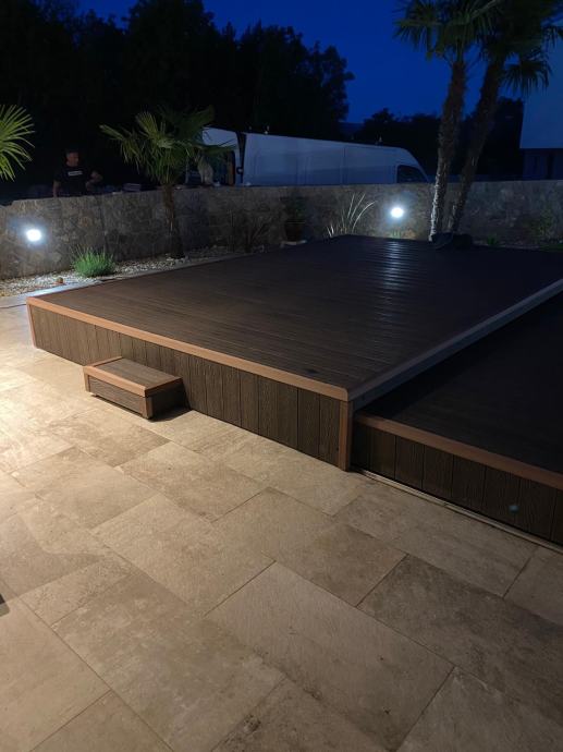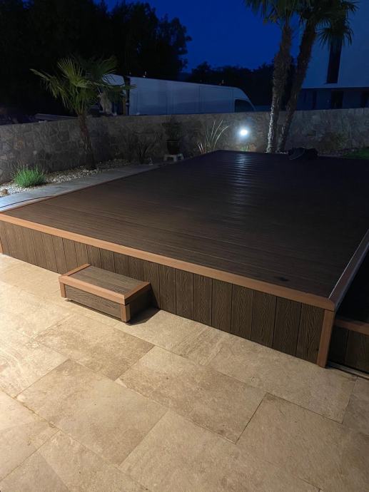 Površina konstrukcije je izrađena od visokokvalitetnog WPC-a (mješavina drvo-plastika) s izgledom drva - savršena alternativa klasičnim drvenim podovima.