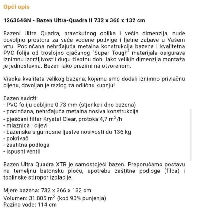 ] Bazen Ultra Quadra XTR732 x 366 x 132 cm, pješčani filtarsa klorgeneratorom, pokrivač,podloga, sigurnosne ljestve, set za čišćenje