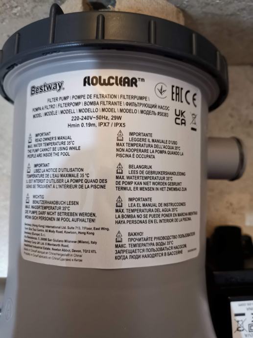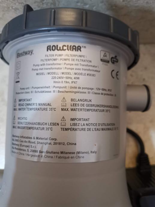 Pumpa za bazen protočna pumpa, Bestway i Intex. Set uključuje pumpu, filter i transformator.