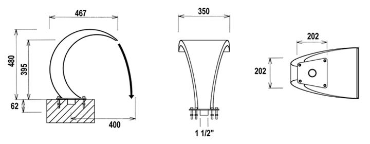 s priljučkom 1" 1/2 ž, visine 48 cm, širina slapa 35 cm, protoka 20 m3/h