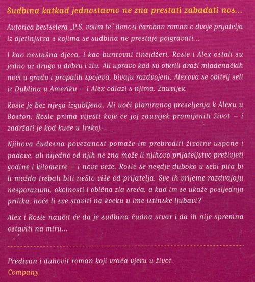 Rosie i Alex bili su najbolji i nerazdvojni prijatelji od svoje pete do sedamnaeste godine, odrastajući u Dublinu. Alex odlazi u Boston, studira medicinu na Harvardu, ženi se i rastaje, postaje poznati kardiokirurg. Rosie je ostala, rodila Katie, ispunila svoj san o vođenju hotela, udala se i rastala. Punih trideset godina održavaju prijateljstvo pismima, porukama, e-mailovima. Iako se vole, odbijaju to priznati dok napokon Alex ne pošalje odlučujuće pismo u kojem joj izjavljuje ljubav i moli da mu pruži priliku i uzvrati ljubav i dok se jednog jutra samo ne pojavi pred njezinim vratima.
