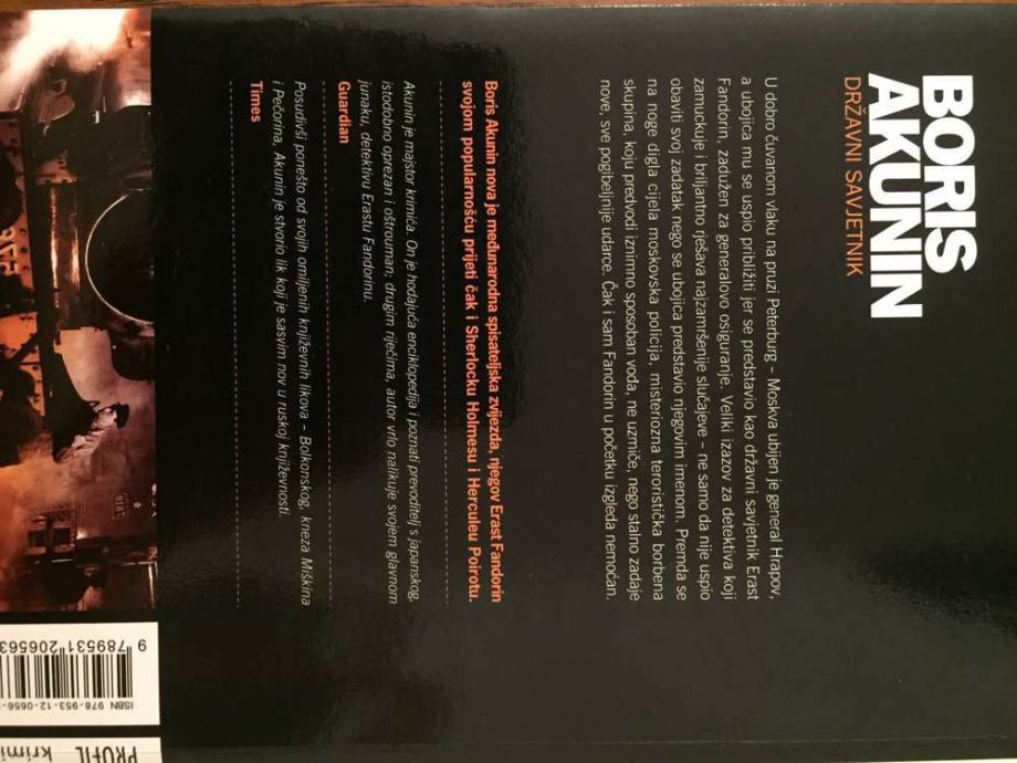 Nakon «Azazela», «Levijatana» i «Ahilove smrti» prva tri romana iz ciklusa od deset romana o doživljajima ruskoga detektiva Erasta Fandorina (ruskog Sherlocka Holmsa) ruski hit - maker Boris Akunin donosi nove uzbudljive pustolovine detektiva Erasta Fandorina, u novoj detektivskoj poslastici «Državni savjetnik».
