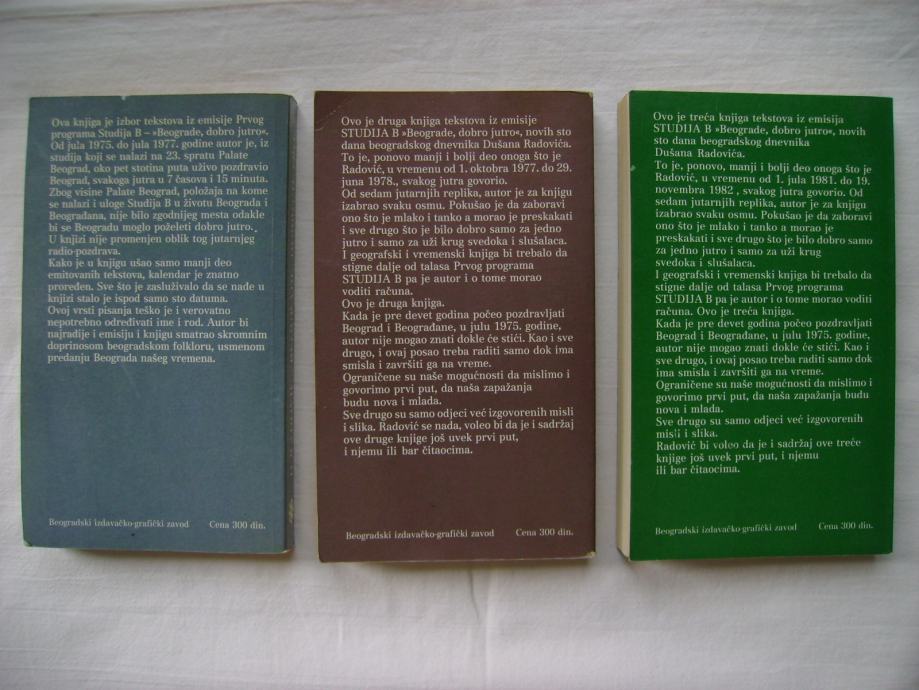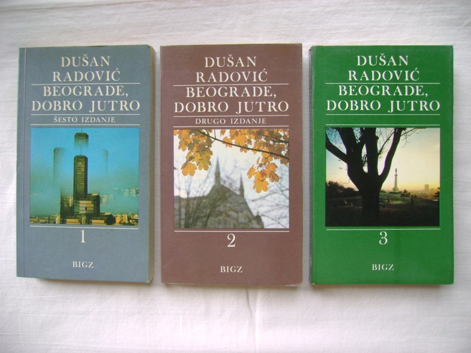Dušan Radović - Beograde, dobro jutro 1-3 - izdavač BIGZ Beograd, 1984. godine, 10 x 18 cm, meki uvez, 207 + 207 + 207 stranica.