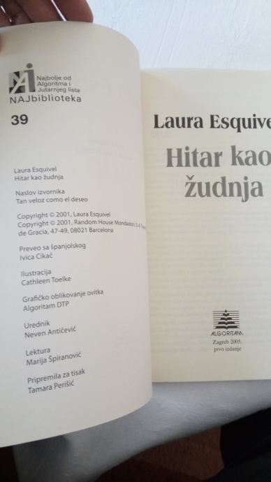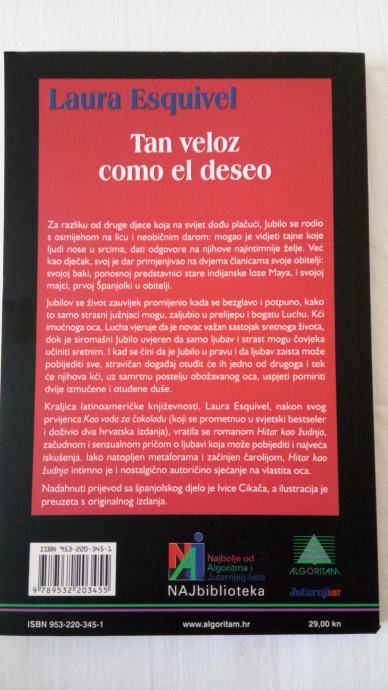 HITAR KAO ŽUDNJA - NOVA KNJIGA - LAURA ESQUIVEL, plaćena 29 kn, kao što piše i na knjizi