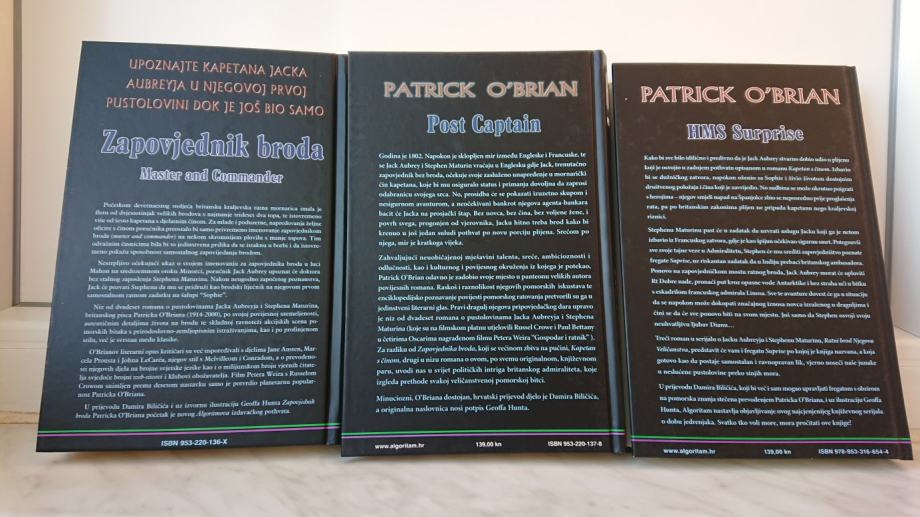 Knjige Zapovjednik broda, Kapetan s činom i Ratni brod Njegova Veličanstva - HMS Surprise, Patrick O' Brian; knjige su nove, nekorištene, cijena je za komplet.