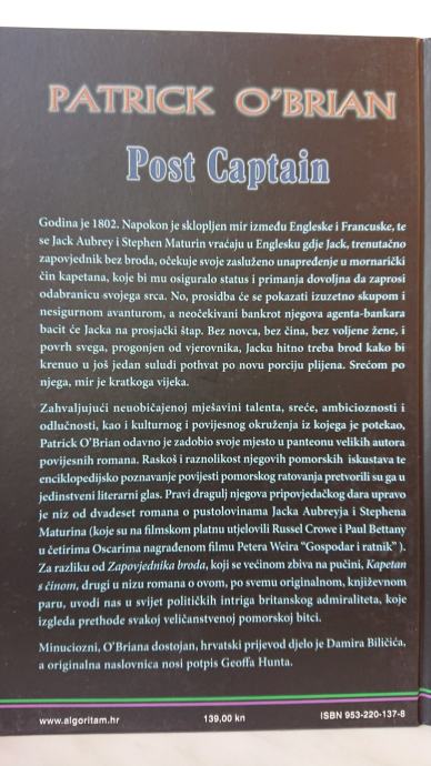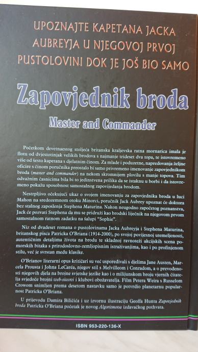 Niz od dvadeset romana o pustolovinama Jacka Aubreyja i Stephena Maturina, britanskog pisca Patricka O'Briana (1914-2000), po svojoj povijesnoj utemeljenosti, autentičnim detaljima života na brodu te skladnoj ravnoteži akcijskih scena pomorskih bitaka s prirodoslovno-zemljopisnim istraživanjima, kao i po profinjenom stilu, već je svrstan među klasike. O'Brianov literarni opus kritičari su već uspoređivali s djelima Jane Austen, Marcela Prousta i Johna LeCarea, njegov stil s Melvilleom i Conradom, a o prevođenosti njegovih djela na brojne svjetske jezike, kao i o milijunskom broju vjernih čitatelja, svjedoče brojni web siteovi i klubovi obožavatelja. Film Petera Weira s Russelom Croweom snimljen prema desetom nastavku samo je potvrdio planetarnu popularnost Patricka O'Briana. 'Zapovjednik broda' prvi je iz niza romana 'Master and Commander'.