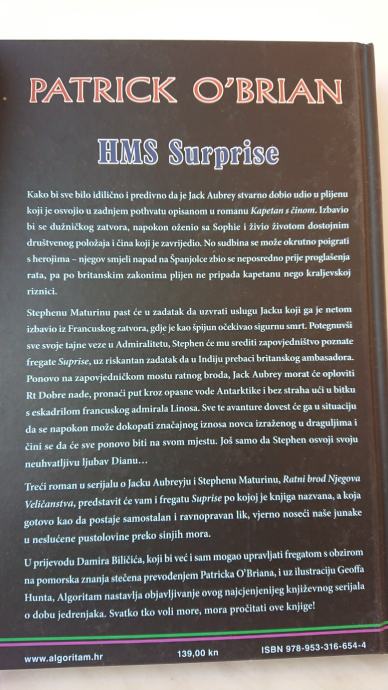 Treći roman u serijalu o Jacku Aubreyju i Stephenu Maturinu, Ratni brod Njegova Veličanstva, predstavit će vam i fregatu Suprise po kojoj je knjiga nazvana, a koja gotovo kao da postaje samostalan i ravnopravan lik, vjerno noseći naše junake u neslućene pustolovine preko sinjih mora.
