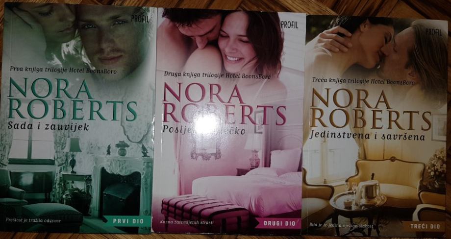 U trilogiji Hotel Boonsboro, Nora Roberts bavi se muškim likovima. Njezini muškarci ponekad su neprilagođeni, ali uvijek odani obitelji, ponekad individualci, ali u potrazi za razumijevanjem. Ženski likovi ipak ne ostaju u njihovoj sjeni, već se afirmiraju kao osobe koje samouvjereno upravljaju svojim životima. Ljubav je kod Nore Roberts iracionalna, često pod utjecajem nepoznatih sila, ali njezini protagonisti zbog nje su spremni preispitati svoje ponašanje i razviti se kako bi dokazali da je zaslužuju. Nora je majstorica akcije i erotike nenadmašna u opisu erotskih scena, a njezini likovi iskreno vjeruju u pravu ljubav, koja trijumfira na kraju svakog njezinog romana.