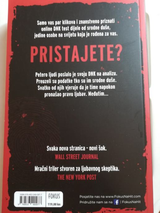 Samo nekoliko klikova i DNK dijele vas od srodne duše, jedine osobe na svijetu koja je rođena upravo za vas. Ali... Svaka stranica ovog magičnog trilera donosi novi šok.