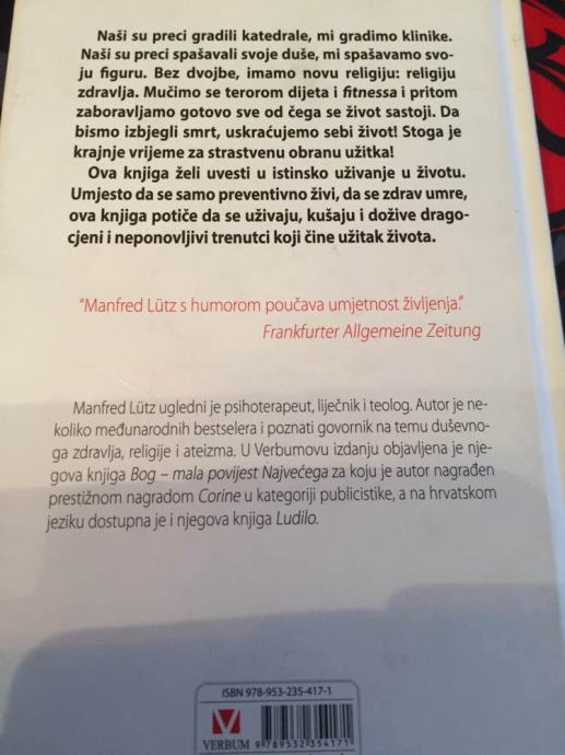 Ova knjiga želi uvesti u istinsko uživanje u životu. Umjesto da se samo preventivno živi, da se zdrav umre, ova knjiga potiče da se uživaju, kušaju i dožive dragocjeni i neponovljivi trenutci koji čine užitak života.