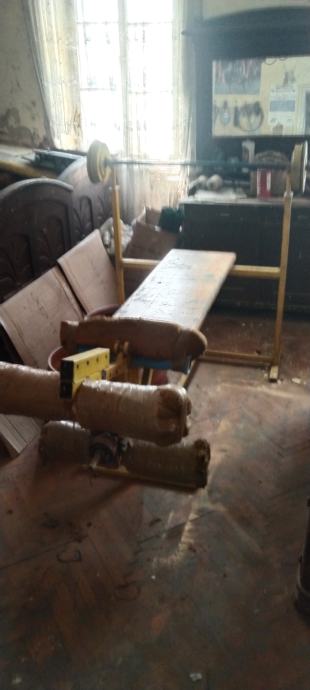 Ručni rad izrazito kompaktna i kvalitetno varenjem izrađena bez vijaka i slično, sa utegom i dodatkom za vježbu nogu, sve u kompletu za 100€ fix.