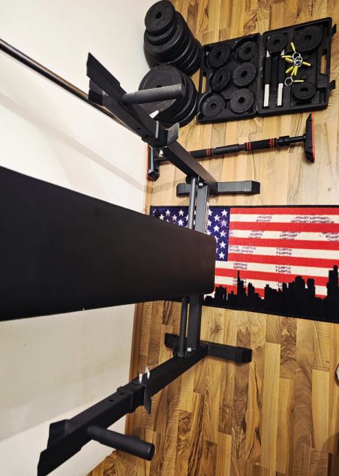 Prodajem komplet za ozbiljan kućni trening – sve sa slike ide u paketu, bez kemijanja i dodatnih troškova.