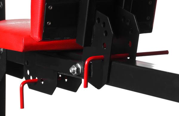 Utičnica za dodatnu dodatnu opremu omogućuje vam spajanje dvostrane podesive klupe s drugim uređajima, npr. scott klupom, ekstenzijom za noge ili lat mašinom.