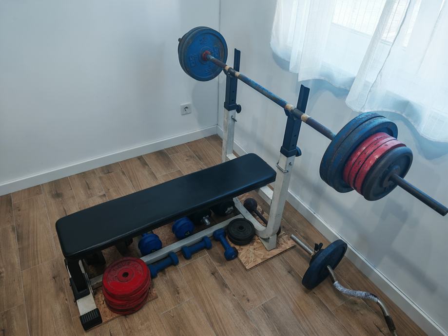 Prodajem rabljenu klupu u dobrom stanju, sa šipkom i utezima 110 kg