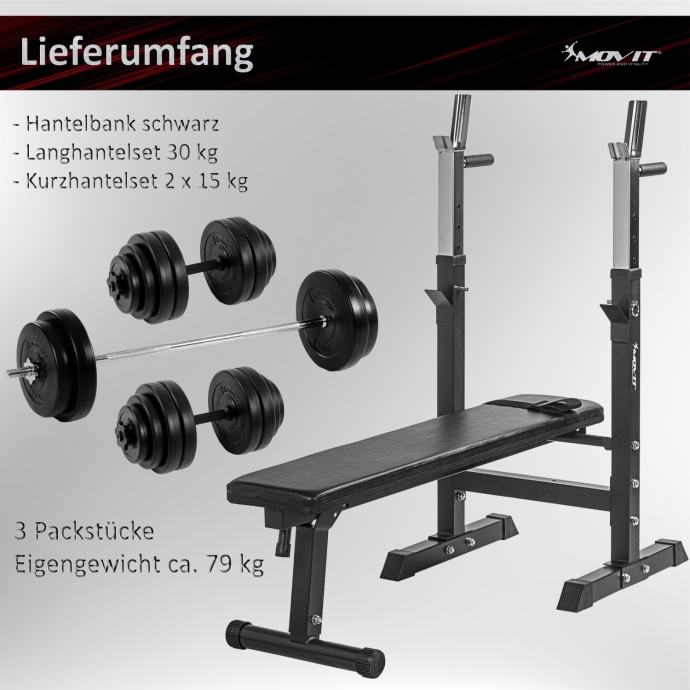 MOVIT klupa za utege “BASIC” - uključujući setove utega i bučica s ukupno 60 kg utega!