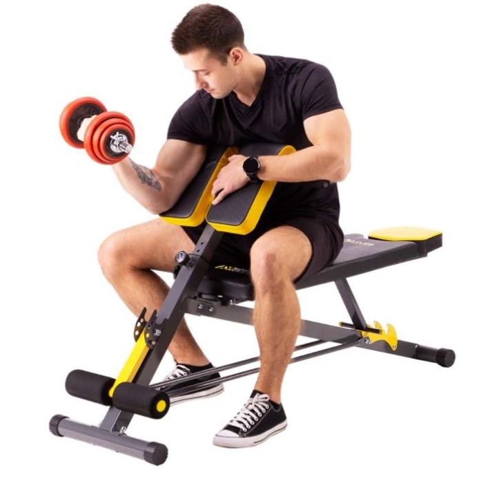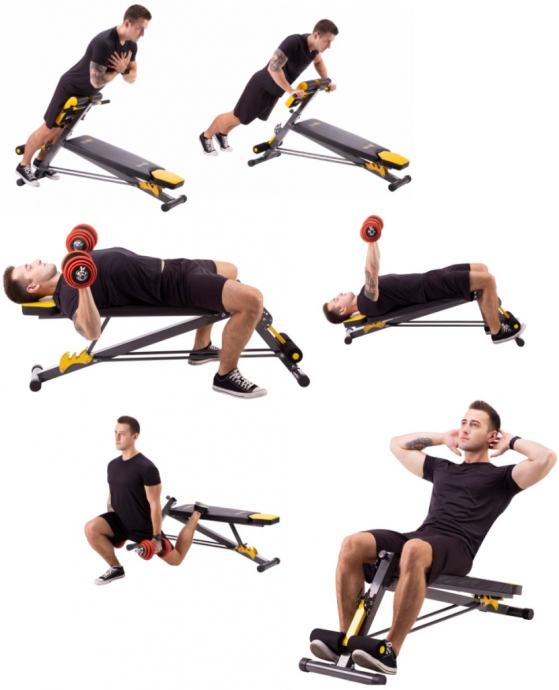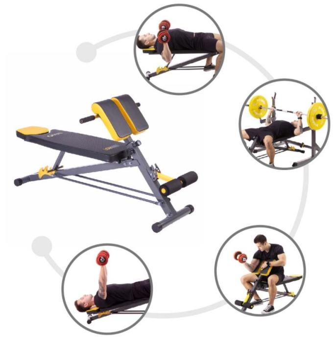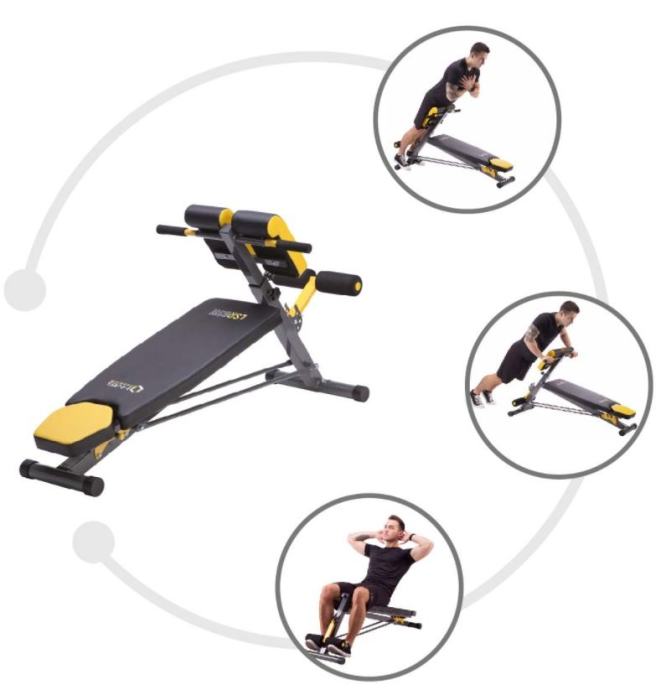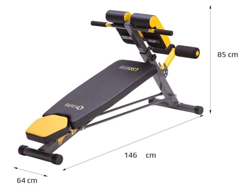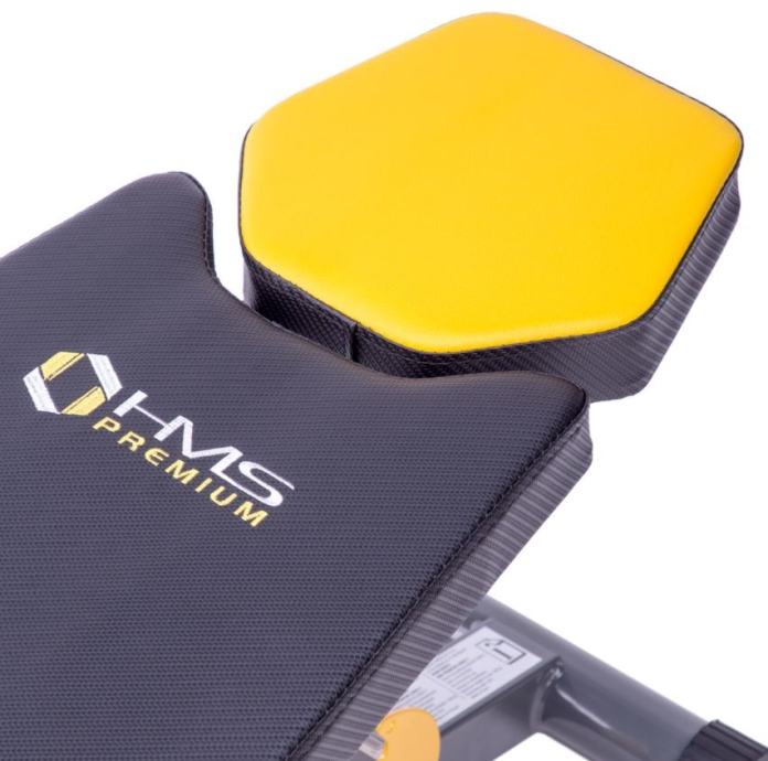 Moderne presvlake sa karbonskim motivom otporne su na vlagu i znoj te sprječavaju klizanje tijela tijekom vježbanja. Također su vrlo ugodne na dodir. Naslon za leđa debljine 5 cm omogućuje iznimno udobno vježbanje. Klupa nije samo udobna i funkcionalna, već i elegantna. Kombinacija crnog karbonskog materijala sa žutim vezenim elementima daje izvrstan vizualni efekt, karakterističan za brend HMS PREMIUM.Na klupi možemo vježbati:sklekovi na ručkamaarm curlpodizanje utega bench pressvježba za leđatrbušnjaciKlupa također ima negativan nagibMaterijal: čelik, pjena, drvo, PVCDuljina: 146 cmŠirina: 64 cm, 43 cm - bez šipkeVisina: 49 - 85 cmpodrška:Duljina: 98,5 cmŠirina: 32,5 cmDebljina: 5 cmNaslon za bedra:Duljina: 29,5 cmŠirina: 16 cm (jedan element), ukupna širina 36 cmDebljina: 5 cmVisina: 73,5 - 88,5 cmDužina držača za noge: 36 cmNaslon: 3 razineOslonac za bedra: 7 razina svakih 2,5 cmOslonac za noge: 4 razinemaksimalno opterećenje:Rimska klupa: 100 kgRavna klupa: 160 kgTežina proizvoda: 13,5 kg