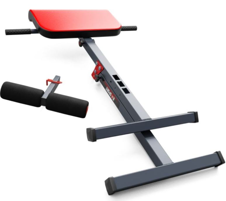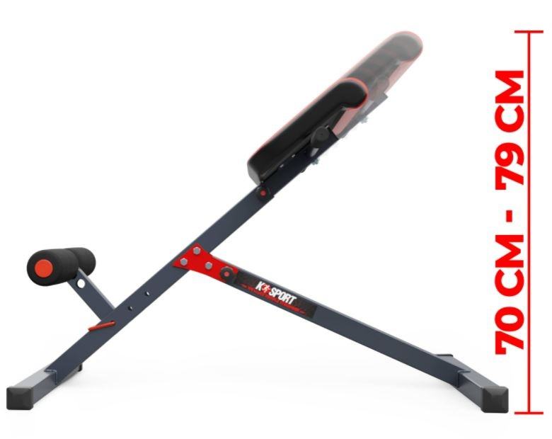Sprava za trening mišića leđa i trbuha. Vrhunski materijali, izdržljiva presvlaka, izvrsna stabilnost i dizajn. Možete slobodno prilagoditi uređaj svojoj visini. Dvostrano horizontalno i okomito podešavanje za noge. Korištenje bočnih ručki olakšava vježbanje. Klupa je sklopiva.Veličina: 105 x 76 x 79 cmDopuštena težina: 120 kgProfil: 40 x 40 mmPrašno lakirana