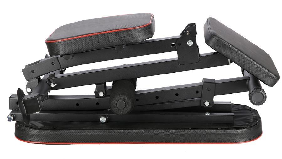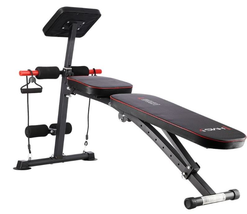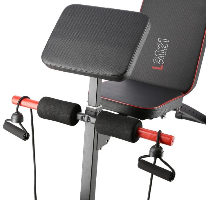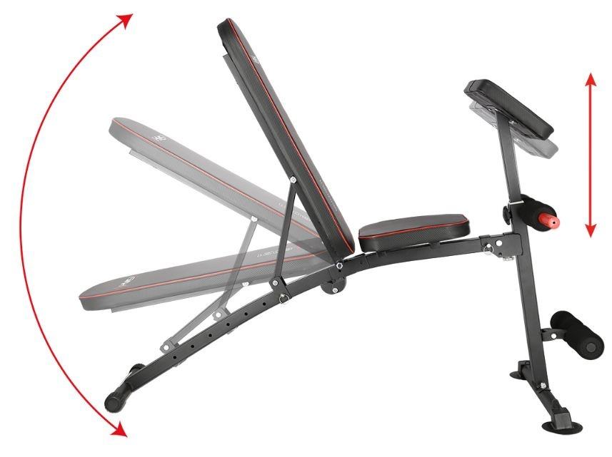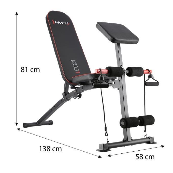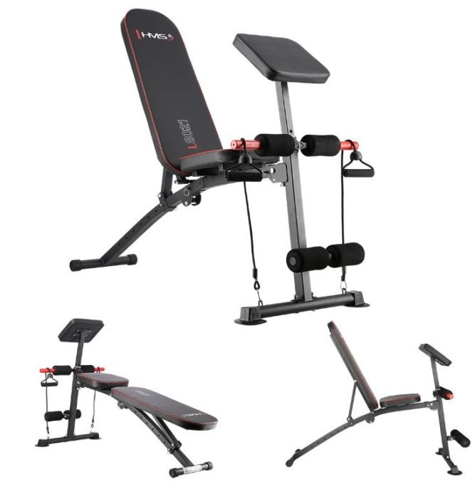 Multifunkcionalna fitness klupa za razne kućne vježbe. Klupa je sklopiva. Nagib naslona po potrebi se može podesiti u 7 različitih kutova, molitvenik se može podesiti na različite visine. Klupa je udobna i funkcionalna, a u isto vrijeme elegantna. Kombinacija crnog karbonskog materijala s crvenim rubovima daje izvrstan vizualni efekt koji je tipičan za marku HMS.Na njemu možemo vježbati:Arm curlPodizanje utega pod različitim kutovima naslonaTrbušne mišiće uvlačenjem nogu ispod pjenastih valjakaVježbanje sklekova na crvenim ručkamaVježbe s elastikamaMaterijal: čelik, mekana umjetna PU kožaDodatne ručke za vježbu sklekovaProfil 50 x 50 mmNaslon za leđa: 7 različitih položaja od -20 do 80 stupnjeva!Veličina: 138 x 58 x 81 cmTežina: 9,5 kgDopuštena težina: 150 kgGumice štite pod