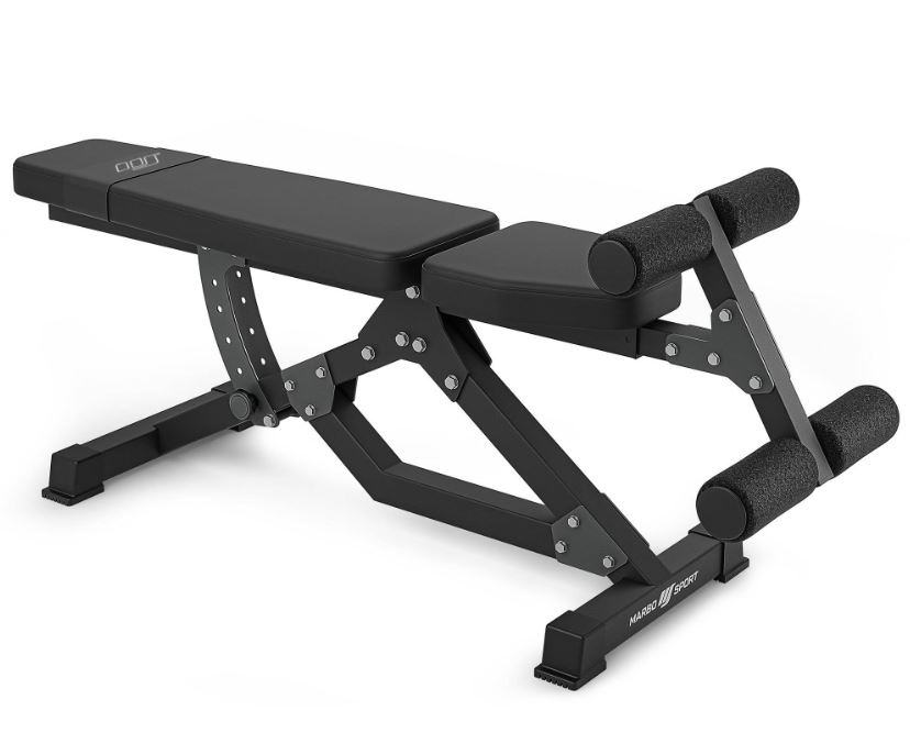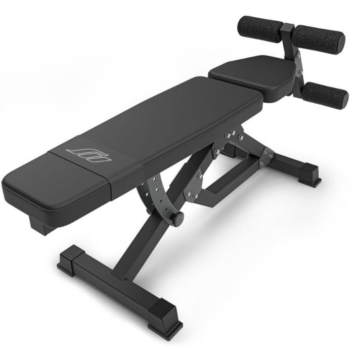 Snažna klupa za vježbanje s dodatkom za noge koja također omogućuje trening trbušnih mišića. Klupa također ima nagib za još zahtjevniji trening. Izdržljiva EVA pjena na valjcima pruža amortizaciju čak i nakon dugih i intenzivnih treninga. Fitnes presvlake - klupa je izrađena od organske kože u elegantnoj crnoj boji.Izvrsna kvaliteta izrade - čvrsti metalni profili i izdržljivi pričvršćivači osiguravaju pouzdanu stabilnost čak i tijekom intenzivnog treninga.Podesivi nagib - zahvaljujući tome možete prilagoditi razinu težine vježbe svojim ciljevima.Podešavanje dužine - oslonac za noge može se u potpunosti prilagoditi bez obzira na vašu visinu.Funkcionalnost - bench omogućuje izvođenje cijelog treninga trbušnih mišića i kompletnog trening s utezima!Gumene nogeOjačana je dodatnim pojasom na mjestu najizloženijem habanju.Materijal: čelikDuljina: minimalna 135 cm, maksimalna 146 cmŠirina: 45 cmVisina: 58 cmProfil: 50 x 50 x 2 mmMaksimalna nosivost: 250 kgKut naslona: 0°, -8°, -15°, -22°, -28°Podesivi oslonci za noge: 4 položajaTežina: 20 kgProizvedena u EU