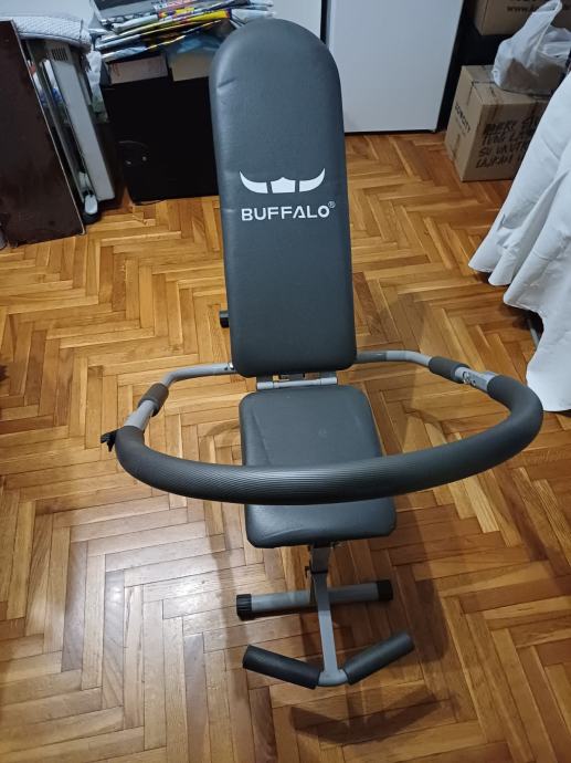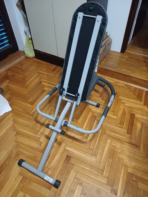 Malo korištena klupa za trbušnjake. Ima par udubljenja u spužvi gdje je kutija bila naslonjena, ali nije nigdje oštečena.