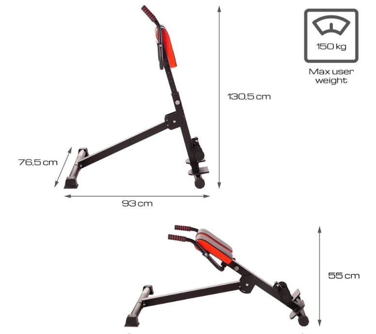 Fitness klupa za leđa koja se može podesiti po kutu i naslonu, tako da vježbe možemo prilagoditi različitim intenzitetima i korisnicima. Zahvaljujući dodanim ručkama vježbanje je sigurnije. Idealna za mišiće leđa, stražnjice i bedara.Materijal: čelik, PU pjenaDuljina: 93 - 121 cmŠirina: 76,5 cmVisina: 55 - 130,5 cmSklopljene dimenzije (stojeći položaj):Duljina: 26 cmŠirina: 76,5 cmVisina: 120 cm7 stupnjeva podešavanja naslona (svakih 6 cm)4 stupnja nagibaMaksimalna težina korisnika: 150 kgTežina proizvoda: 11,5 kg