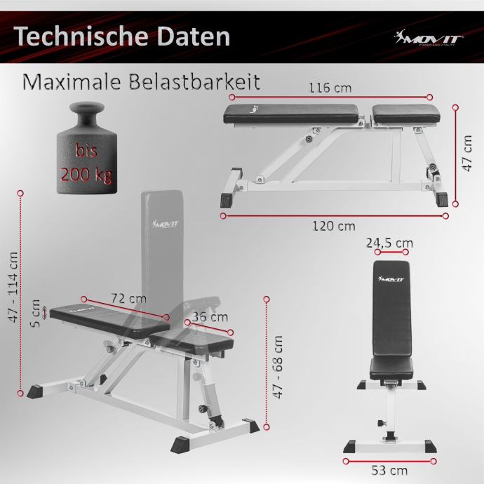 MOVIT® nagnuta klupa - profesionalna višenamjenska klupa za utege za vašu kućnu teretanu!