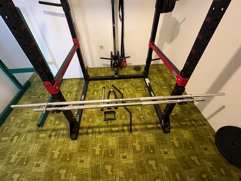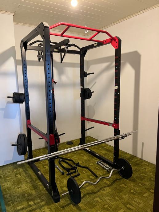 Prodajem rack za trening. Visina racka je 216cm i širina je 121cm. Uz rack dolazi klupica za bench koja ima funkciju nožne ekstenzije i klupice za biceps pregib.