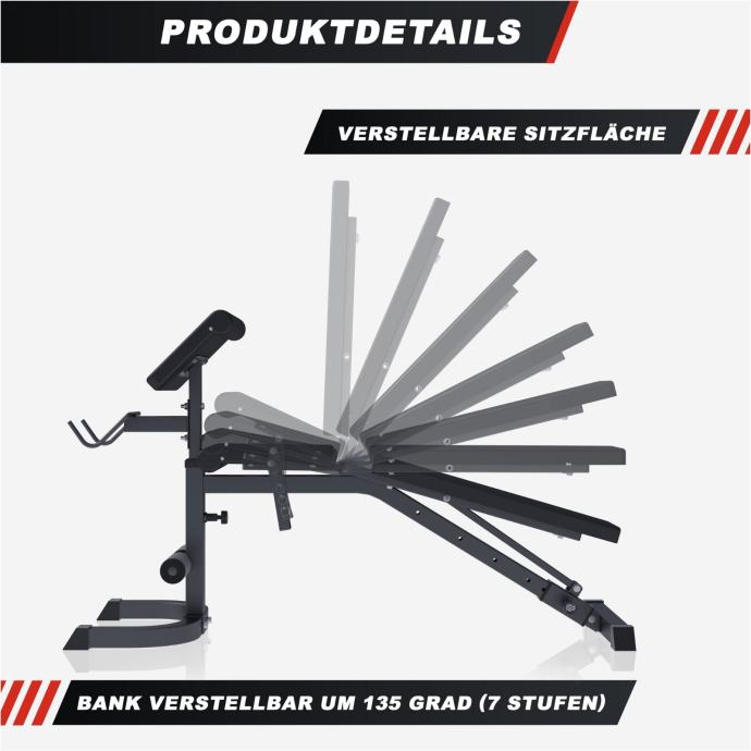 Detaljna i inovativna – tako se predstavlja potpuno podesiva klupa za vježbanje s nagibom i jastučićem za pregibe. Brojne mogućnosti podešavanja pružaju vama i vašim mišićima savršenu platformu za širok raspon vježbi usmjerenih na različite mišićne skupine. S ovim čudom možete trenirati čak i trbušne mišiće, jer se naslon može podesiti u nevjerojatnih sedam koraka – a zahvaljujući negativnom nagibu, čak ni trbušnjaci s nagibom nisu problem.