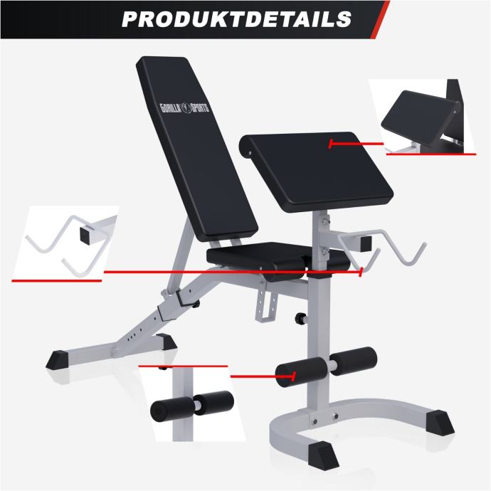 Mnogo opcija znači mnogo prilika za savršen trening. Bezbrojne mogućnosti podešavanja omogućuju vam simuliranje raznih drugih sprava, dodajući dodatnu snagu vašem planu treninga. Sigurnost i stabilnost su najvažnije: mehanizam za brzo podešavanje i zaključavanje drži naslone i jastuke točno tamo gdje ih postavite. To vam omogućuje da se u potpunosti koncentrirate na trening. Gumirane nožice koje štite pod jamče sigurno uporište, čak i tijekom intenzivnog i znojnog treninga. Shema boja je crno-bijela. Upute za sastavljanje su uključene.