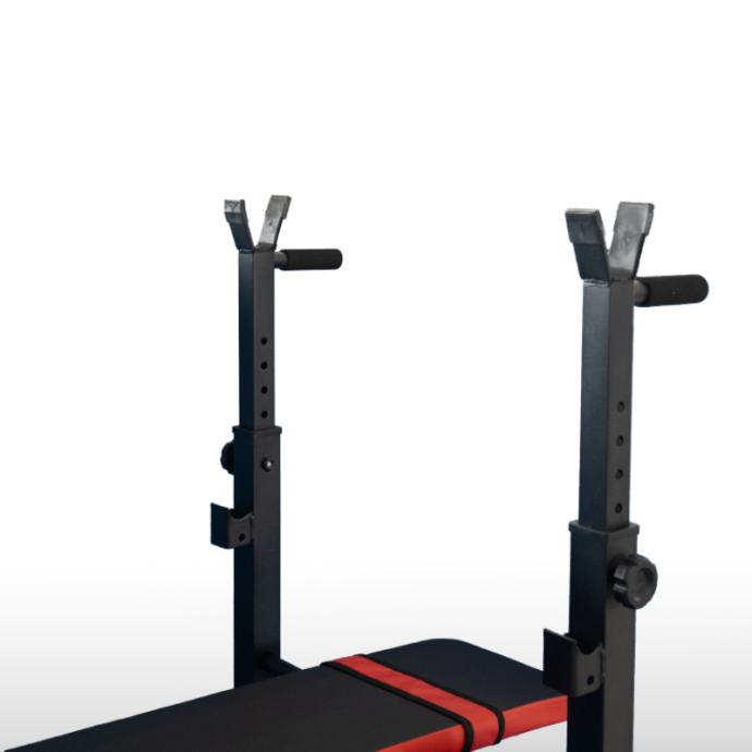 Višenamjenska bench klupa sa stalcima Fight Line BPK-31 savršen je izbor za sve one koji žele unaprijediti svoje treninge kod kuće. Postoji više vrsti vježbi koje se izvode na ovoj spravi, a najčešće je to ravni bench press (dizanje utega s klupe).