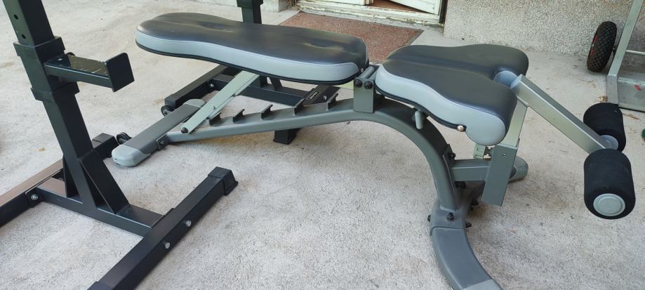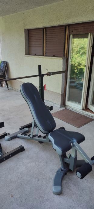 Višenamjenska podesiva bench klupa - podešavanje kuta naslona u 6 koraka i podešavanje kuta sjedala. Jako teška i stabilna konstrukcija, vrlo malo korištena