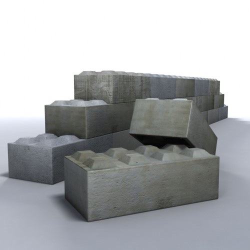 Jedna kocka dimenzija 160 x 40 x 40 teška je 615 kg. Kocke se mogu slagati nekoliko metara u visinu i mogu tvoriti vrlo stabilnu betonsku strukturu.