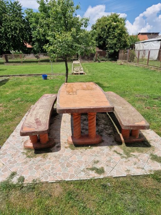 Masivni vrtni betonski stol s dvije klupe u kompletu, prodajem. Molim bez ikakvih poruka, samo poziv na mobitel.