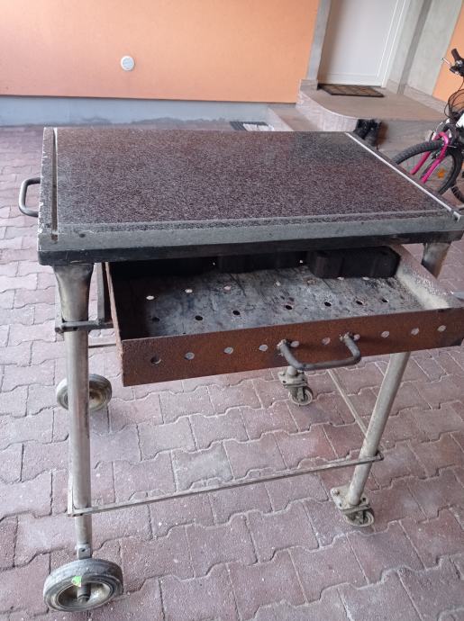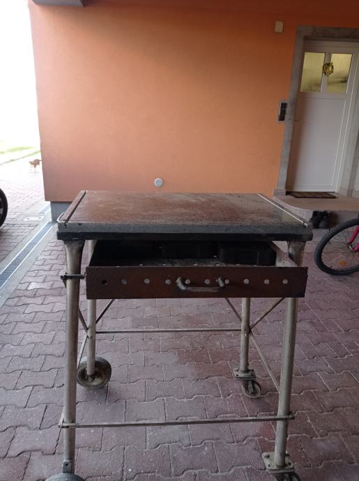 Rosvajni roštilj s granitnom pločom na kotače Ploča 80*50cm debljina 5 cm.