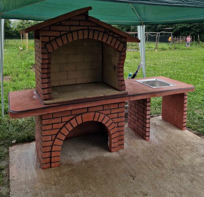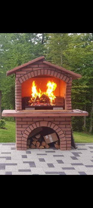 Upite slati na WhatsApp ili Viber 0038598377933...................Cijene su izražene po slikama i ide plus pdv. Čitati cijeli opis.Kon.098377933...MINI PEČENJARA KROVIĆ CIGLICA.Ložište širine 100cm,dubina 60cm,visina 200cm,radna ploča dužina 175cm,dubina radne ploče 90cm,..ploča se može pomicati ljevo desno za odlaganje pribora radni stol Težina kamina 1000kg.DOSTAVA cijela Hrvatska i EVROPSKA UNIJA.