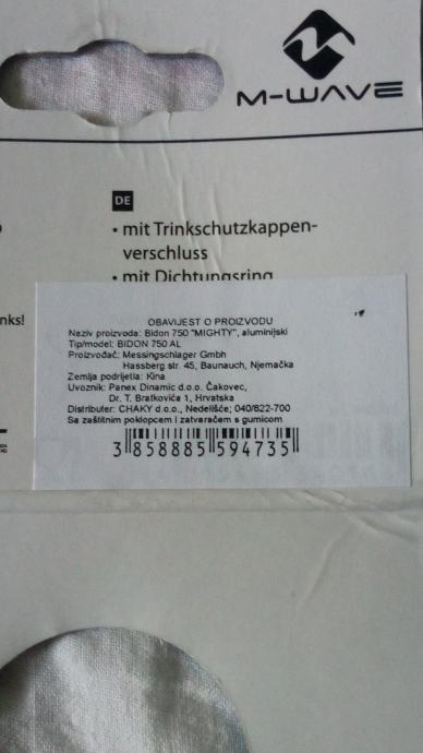 Bidon boca flaša aluminium 750ml za bicikl POTP. NOVA NEKORIŠTENA