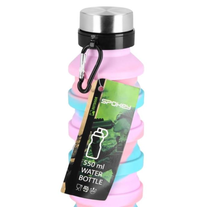 Rastegljiva boca za vodu izrađena je od 100% silikona bez mirisa BPA. Vrlo je lagana, maksimalno stegnuta, a pogodna je i za tople napitke. Ima metalni karabin tako da bocu možete objesiti na odjeću ili torbu. Omogućuje ugodno piće zahvaljujući praktičnom usniku koji se izvlači.Sklopiva boca za voduKada je prazna štedi prostorPogodna za svakodnevnu upotrebu i aktivno slobodno vrijemeIzrađena od mehanički otpornog i 100% sigurnog silikona bez BPAIzvrsntan poklon za svakog ljubitelja prirodeTežina: 206 gVolumen: 550 mlProdužena duljina: 25 cm