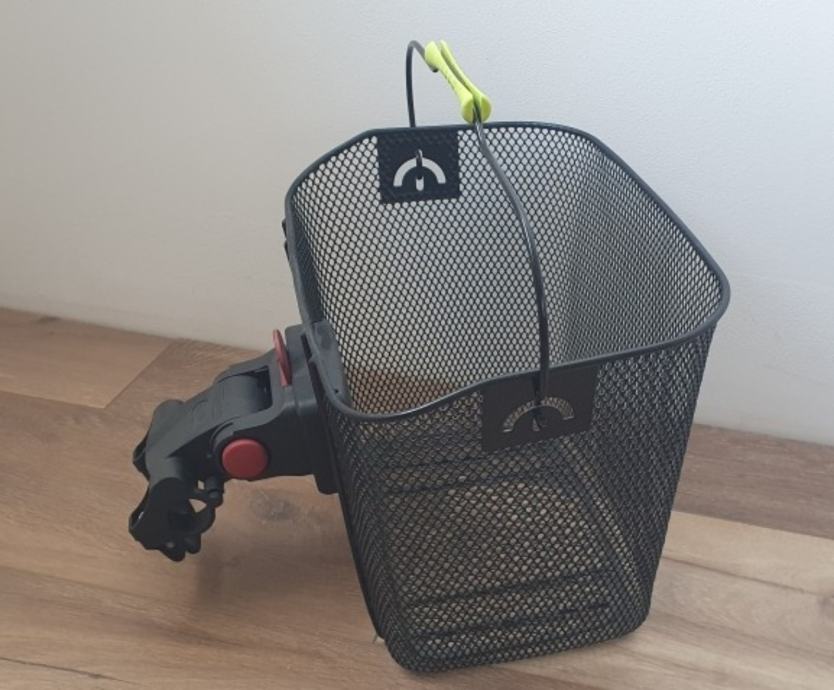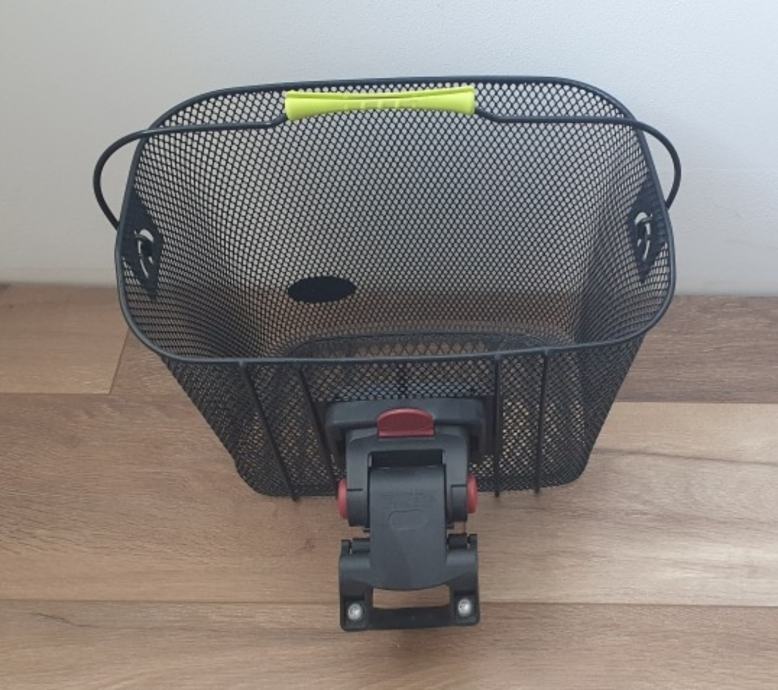 Ima nosač koji se montira na upravljač/volan koji ostaje montiran a košara se stalja ili skida na klik sistem.