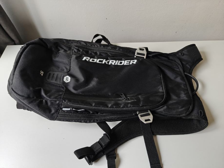 Malo korišteni i uščuvani Ruksak za bicikl Rockrider ST900, zapremine 12L s mijehom za vodu od 2L.