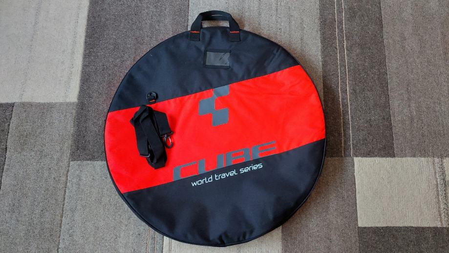 Nova torba Cube za kotač 26-29" black/neon flashred. Unutarnji dzep i zaštita za diskove, prima kotače do 29x2.6. Isprobano