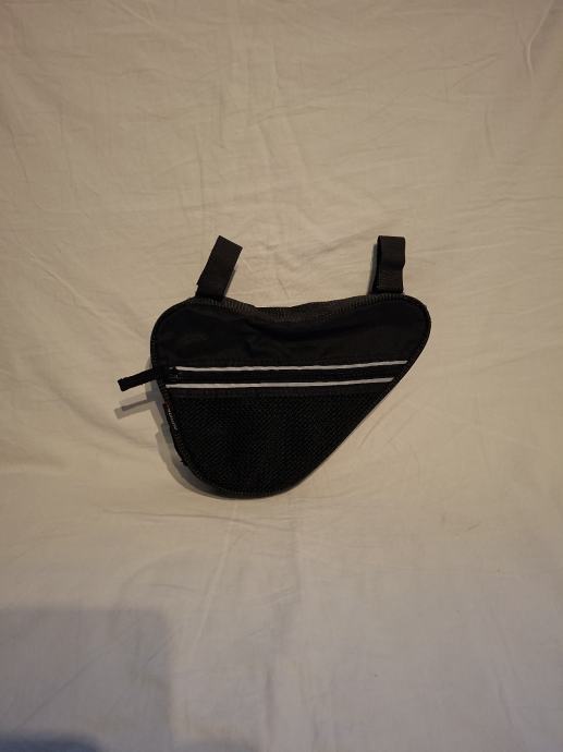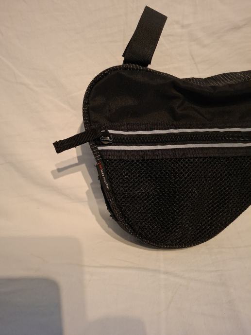 Prodajem malo rabljenu ali u odličnom stanju AUTHOR torbicu za bicikl u crnoj boji s reflektirajućom trakom. Praktična torbica trokutastog oblika s mrežastim džepom i čvrstim trakama za montažu na okvir bicikla. Savršena za spremanje manjih predmeta tijekom vožnje biciklom.