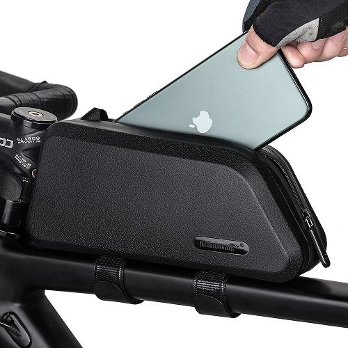 Stabilna: Torba se može pričvrstiti pomoću tri posebne trake na okvir bicikla. Trake su dovoljno dugačke da torbu čvrsto stegnu uz prednju i gornju cijev. Izrađene su od neklizajuće meke kože kako bi se smanjilo trenje na biciklističkoj cijevi.