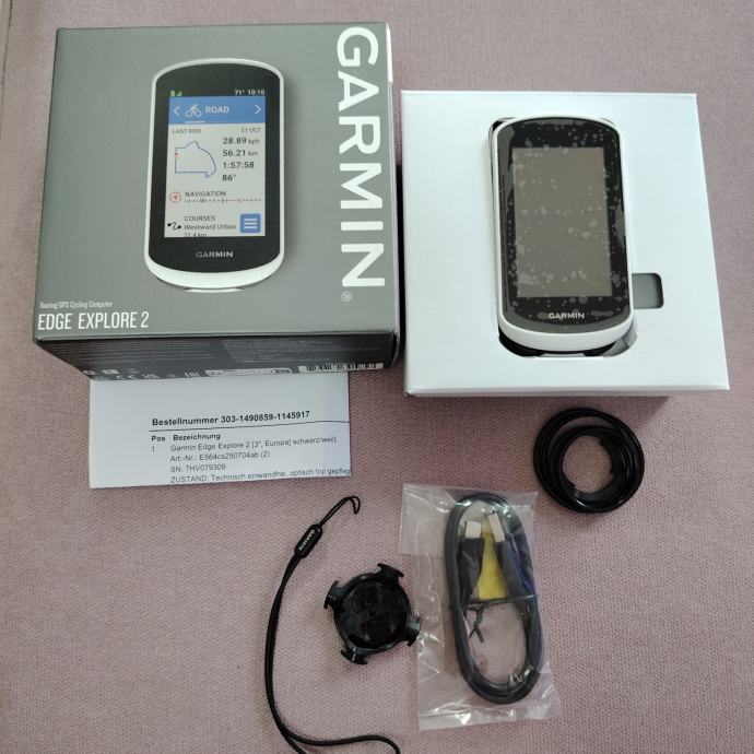 Prodajem Garmin Edge Explore2 s pripadajućom kutijom i opremom: nosač, gumice, USB-C kabel.