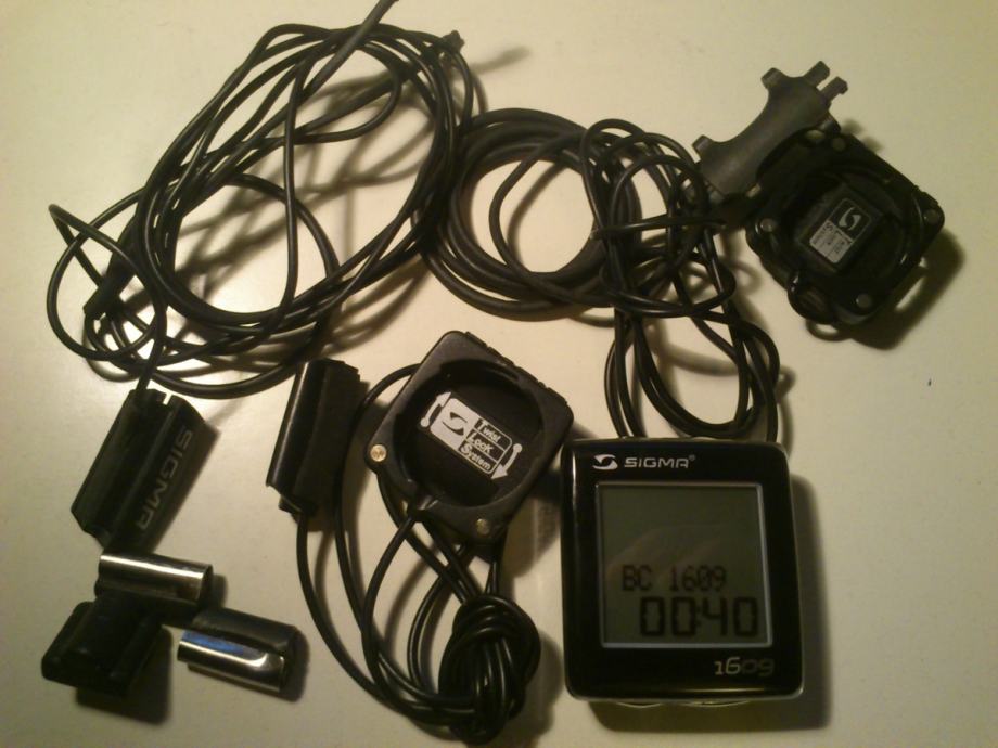 Ciklokomp Sigma 1609 (dvije veličine kotača, pozadinsko osvjetljenje, temperatura, kadenca...) +nosači za dvije bicikle+senzor za kadencu.