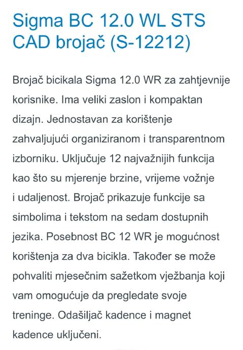 sigma brzinomjer, brzinomjer Sigma BC 12.0 WL STS +senzor cadence