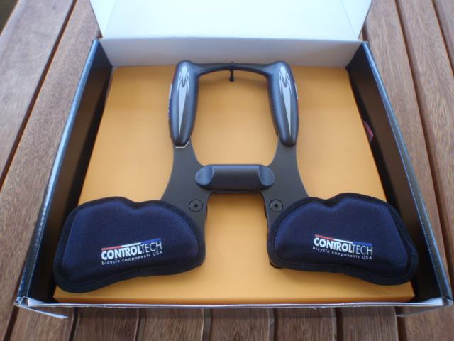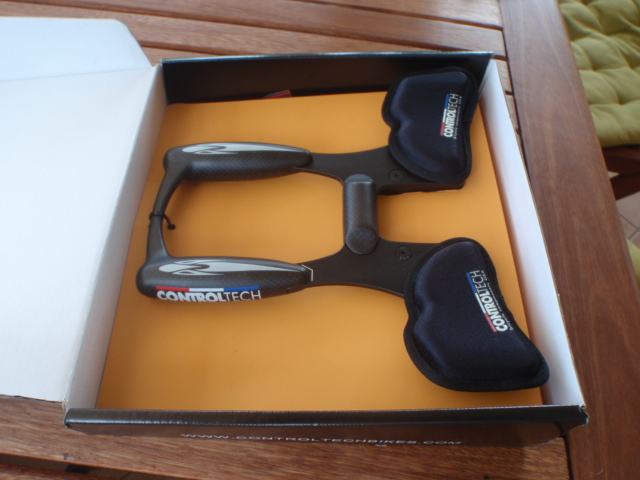 Aerobar za triatlon. Materijal je kombinacija aluminija 7075 i 3K karbona. Izuzetno lagani, samo 338g. Obujmice za volan 31.8mm
